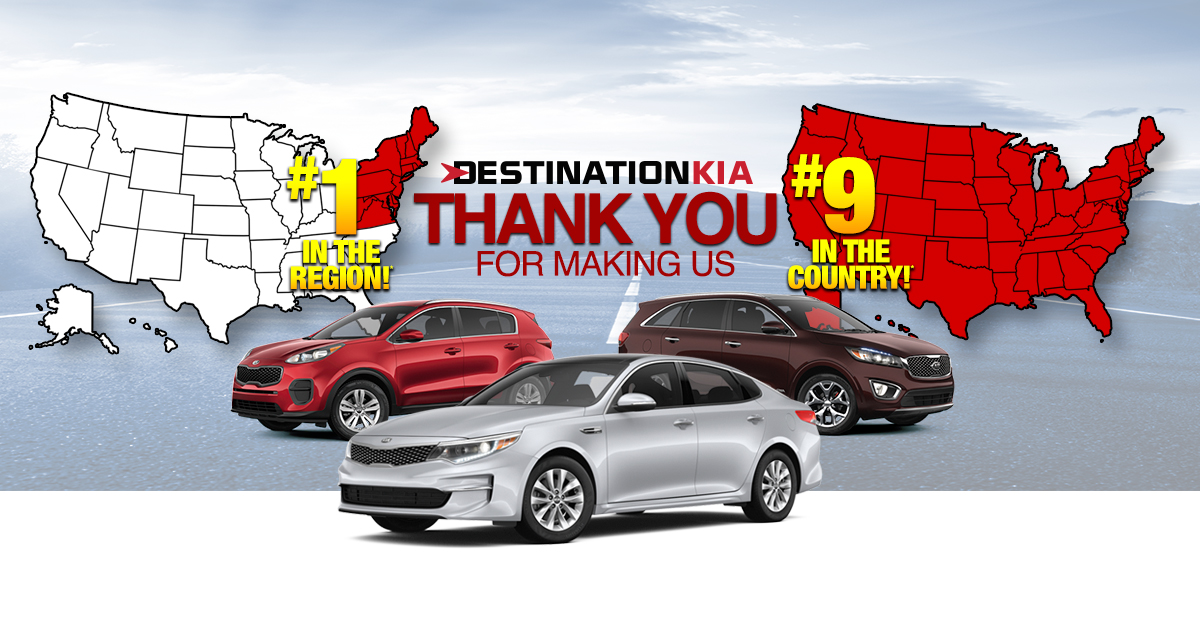 Destination Kia has officially been named the Number One Kia Dealer in the Region! We are so pleased to announce this amazing recognition and take the time to thank all of our customers from Albany, Schenectady, Clifton Park, Queensbury, and Kingston, NY for helping to make this happen. We take pride in providing all of our customers with only the best options in our inventory and top-quality customer service each and every time you visit our dealership. We invite you to take a look at all of the incredible models we currently have available by browsing through our New Vehicle Inventory right here on our website. After, head on over to see us here at 760 Central Ave Albany, NY 12206 to take a test drive in any vehicle that you see.