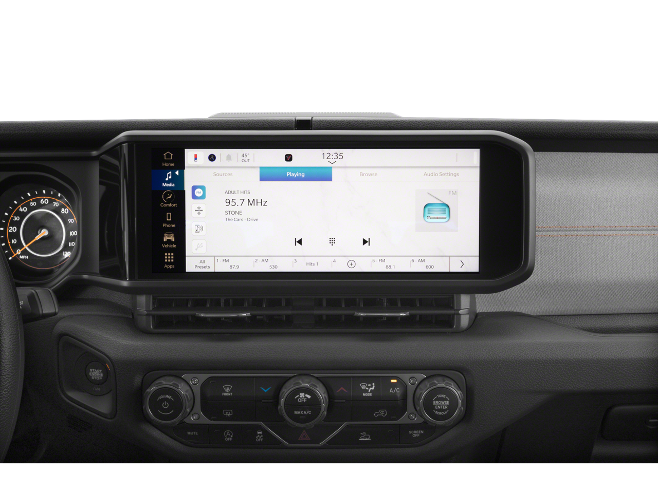 - Radio w/Seek-Scan, Clock, Speed Compensated Volume Control, Aux Audio Input Jack, Steering Wheel Controls, Voice Activation, Radio Data System and Uconnect External Memory Control